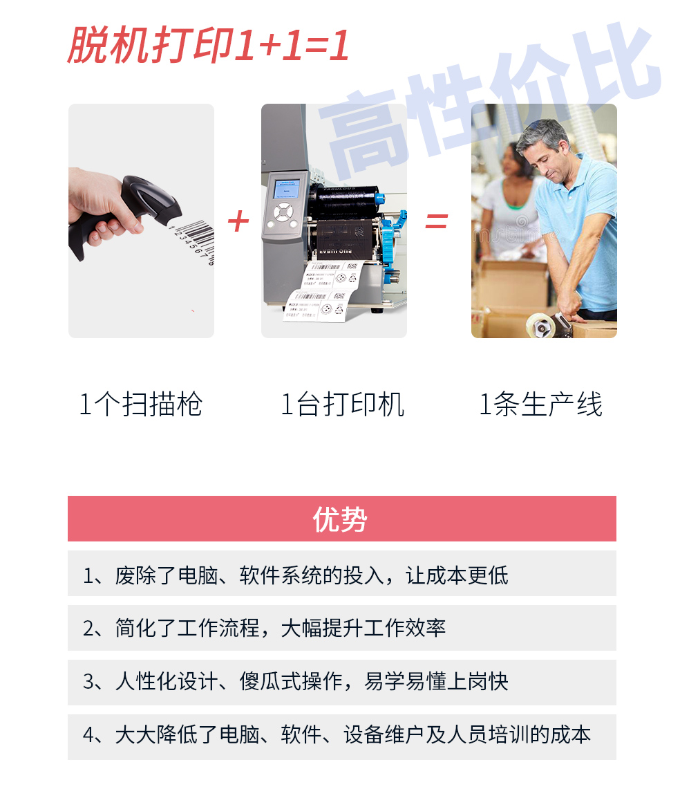 1.節省空間、低功耗。 2.外觀緊湊美觀,小巧輕便,可隨時隨地使用。 3.可獨立工作,脫開電腦和軟件的控制,編輯打印可在幾秒內完成。 4.外部接口豐富,應用廣泛。如:自動化流水線、手機制作行業、物流行業、應用終端行業、制衣行業等等。